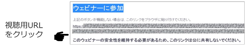 当日は、メールに記載の視聴用 URL をクリックして、Zoom にご入室ください。